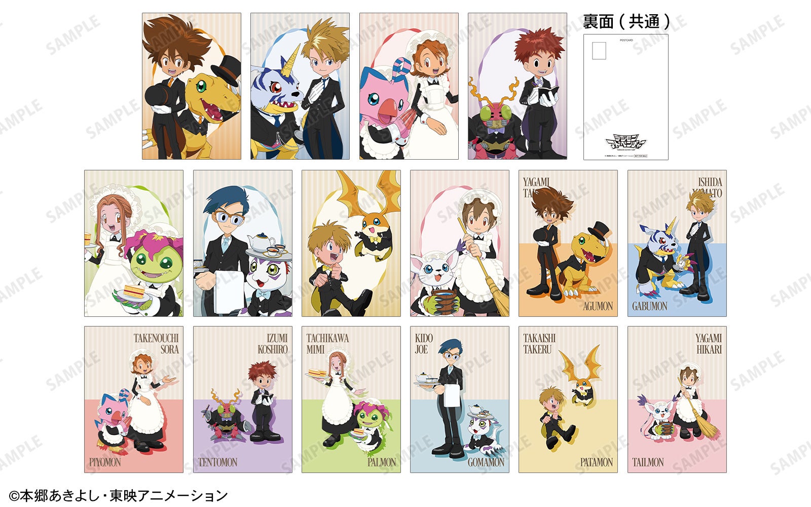 今回のイベントでは『デジモンアドベンチャー』より「メイド&執事」をコンセプトにした新規描き下ろしイラストを使用した新規グッズを多数先行販売する他、イベント購入特典の配布やスタンディパネルの展示を予定しております。