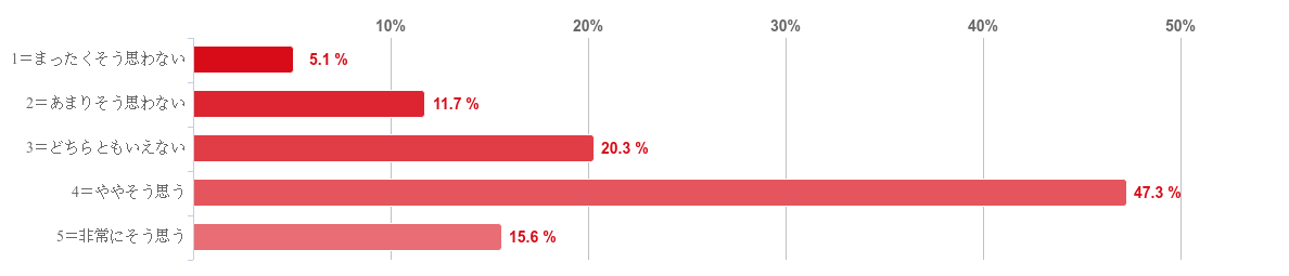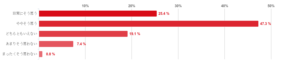 「ややそう思う」と回答した人が47.3%と約半数で最も多かった。次いで「非常にそう思う」と回答した人が25.4%、「どちらともいえない」と回答した人が19.1%だった。