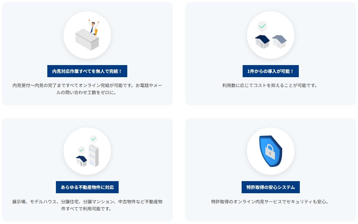 戸建住宅はもちろん、マンションなどの集合住宅においても、物件特性に応じた無人内見の運用が可能です。