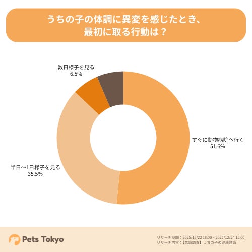 Lehman Holdings株式会社のグループ会社である、Pets Tokyo株式会社(本社:東京都千代田区、代表取締役:Raymond)は、ペットに関する健康意識の実態を把握するため、犬猫の飼い主を対象に「体調不振時の受診判断」に関する意識調査を実施しました。