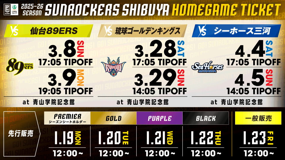 このたびサンロッカーズ渋谷は、2026年4月4日(土)・5日(日)青山学院記念館でシーホース三河戦を開催します。