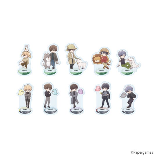 飾るだけで卓上がパッと華やぐ定番アイテムのアクスタ。キラ、ハク、シモン、ゼン、ショウの5人が2種ずつラインナップしています。