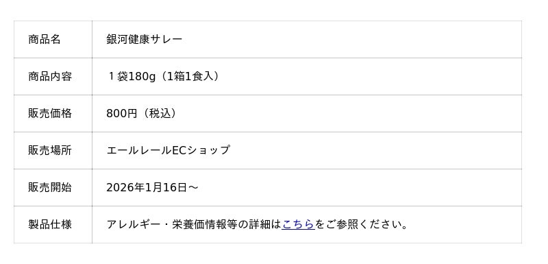 株式会社アド近鉄(大阪市天王寺区、取締役社長:村上正浩)は、2026年1月16日(金)から、サウナ好きの社員が開発した“ととのう”ためのサウナ飯「銀河健康サレー」をエールレールECショップで発売します。