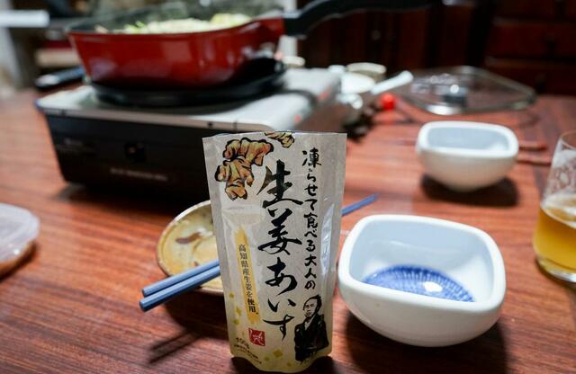 「アイス」というと通常夏向きのように思えますが……。この「大人の生姜あいす」は、凍らせて食べるだけでなく、温かいドリンクやお酒との相性もよく、冬でもGOOD。