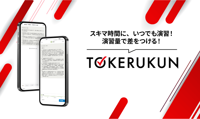 オンライン問題演習サービス!TOKERUKUNTOKERUKUNは各科目の肢別過去問集の問題を解くことができるオンライン問題演習サービスです。正誤だけでなく解説も確認することができるので移動時間なども有効活用していつでもアウトプット対策ができます。