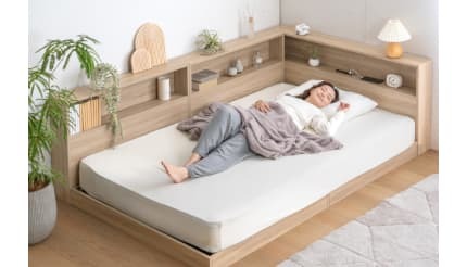ヘッドボード側のみに収納を備えるベッドと比較して収納量が増えており、マンガや文庫本などをシリーズでまとめて収納するといった使い方にも対応する。
