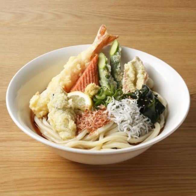 現地では1時間だけの提供の人気のうどん。もっちりとした麺に瀬戸内の食材を合わせました。