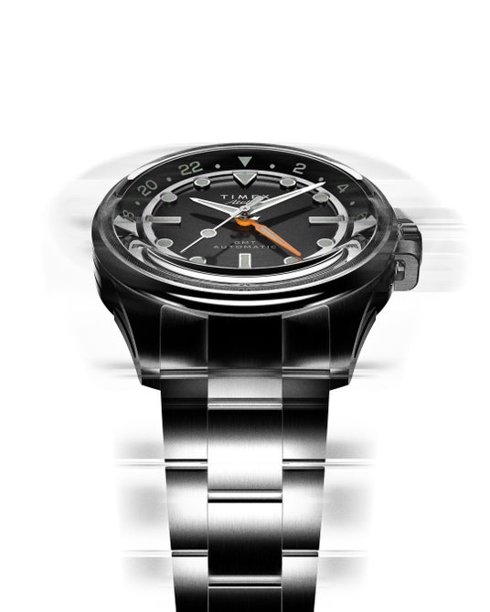 目的に即した機能性とディテール。精度の求められる複雑機構を搭載した機械式時計。TIMEX Atelierは、真のラグジュアリーは時間とともに現れるという理念に基づいています。TIMEX Atelier GMT24 M1aはデザインの精度と実用性を融合させ、この哲学を継承しています。すべてのプロポーション、すべての曲線、すべてのリフレクションは、時計というアイテムを通して見える時間をいかに明快で美しく見せるかを考え抜いて作られています。