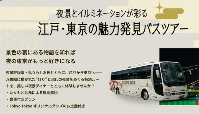 中でも必見は、夜景評論家・丸々もとおさんと一緒に都内の夜景とイルミネーションを巡るバスツアー「夜景とイルミネーションが彩る江戸・東京の魅力発見バスツアー」。