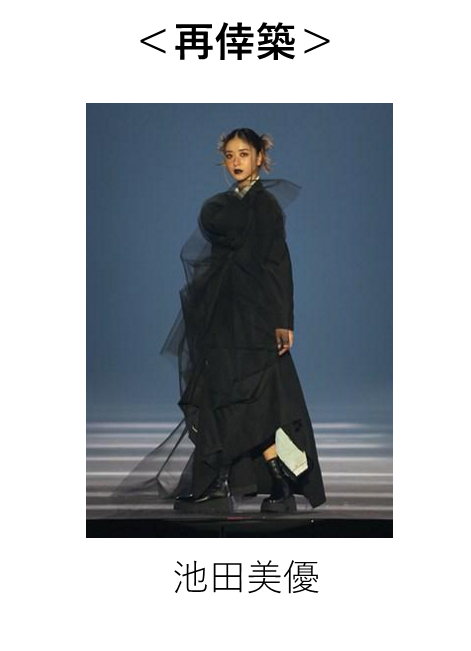 古着を全て手作業で、他にはない一点物のオリジナルデザインへとリメイクすることで、古着に新たな価値を提供するだけではなく、ファッションへの思考をもリメイクすることを目的に活動をしているブランドで、TGC初登場となる再倖築(サイコウチク)は、「暗闇の中に光はあるのか」をテーマに、この日のために制作された衣装、オリジナル楽曲の中、“自分の中に目標を持つ事や憧れを持つ事が、周りは暗闇でも自分の中に光を見出せるということを表現する。”という想いを込めて今回のショーに向けて新たに制作されたショーピースを披露。堂々と自信に満ちた強い表情で登場した池田美優がラストを飾り『SDGs推進 TGC しずおか 2026』のファッションショーを締めくくりました。