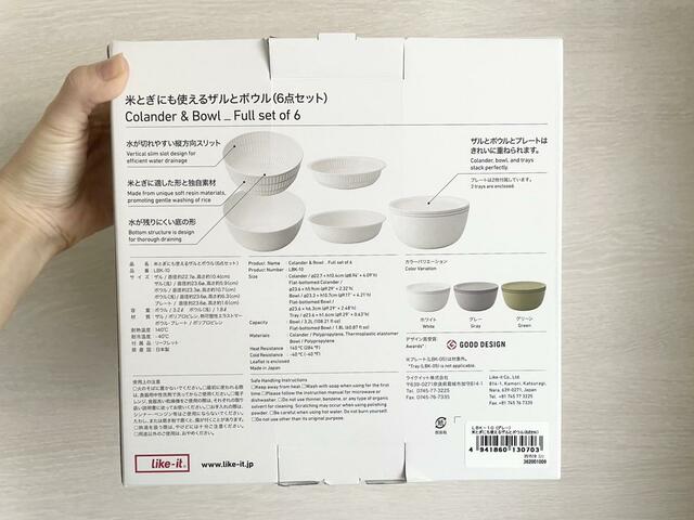 Amazonベストセラー1位にも輝いたライクイットの「米とぎにも使えるザルとボウル」は、ザル・ボウル・プレートがそれぞれ2サイズずつ、計6点がセットになっています。