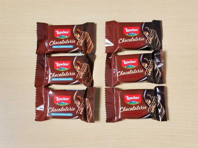 一方のダークチョコ味のコーティングは、カカオ60%のダークチョコです。ウエハース生地に挟まれたダークチョコクリームを含め、ちょっぴりビターな大人の甘さを楽しめますよ。