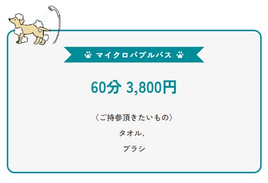 ※小型犬の場合、おおよそ60分でシャンプーが完了します。