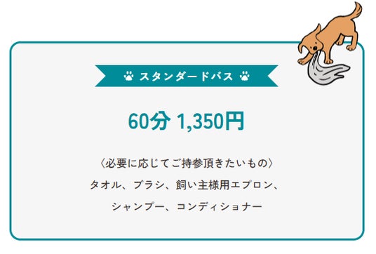 「Self Dog Spa Salud!」は、利用時間で料金が決まるシンプルな料金システム。複雑なオプションや追加料金はなく、初めての方でも安心してご利用いただけます。