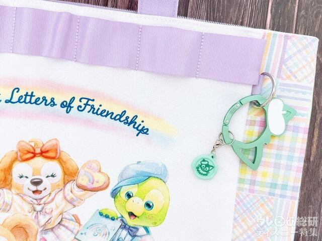 ループ状になっていて、ぬいぐるみバッジなどのチェーンを通して飾ることができます。
