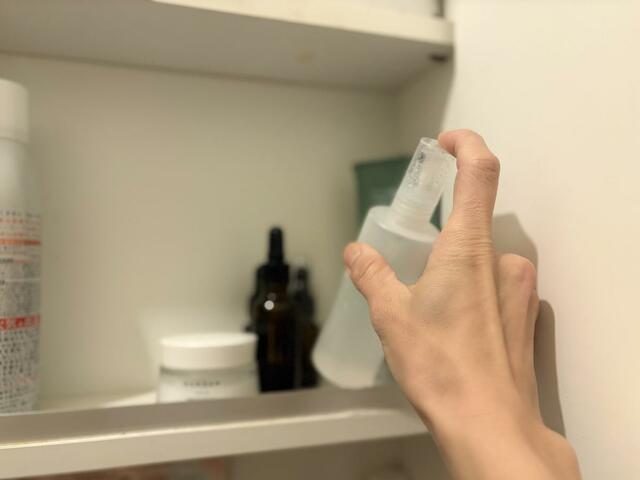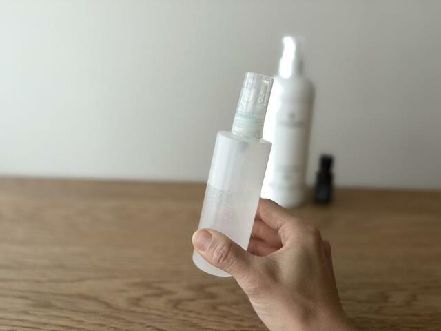 ボトルのままでも支障はないのですが、顔に加えて乾燥で痒くなりがちな背中にも使いやすいよう、スプレー容器に入れ替えています。