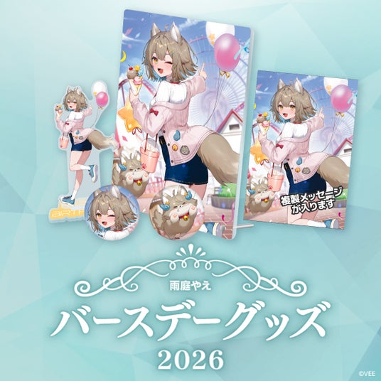 本日・1月18日に誕生日を迎えた雨庭やえのバースデーグッズの詳細を公開するとともに、公式オンラインショップ「VEE Official Shop」にて受注販売を開始しました。