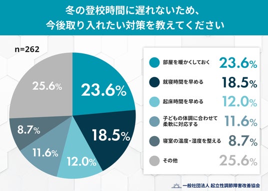 - 対策として「部屋を暖かくしておく」「就寝時間を早める」が上位