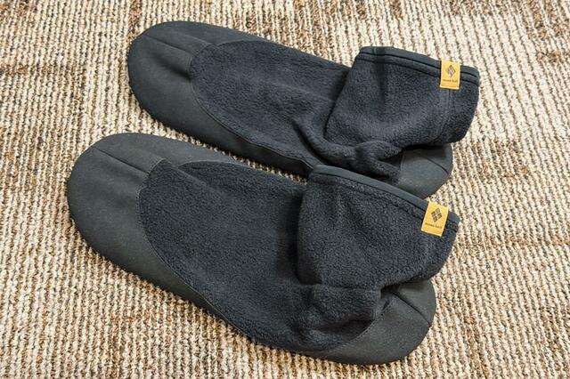 名前の通り、キャンプ(テント内)での使用を想定して作られているため、特に底面はスリッパのようにかなりしっかりとした作りになっています。