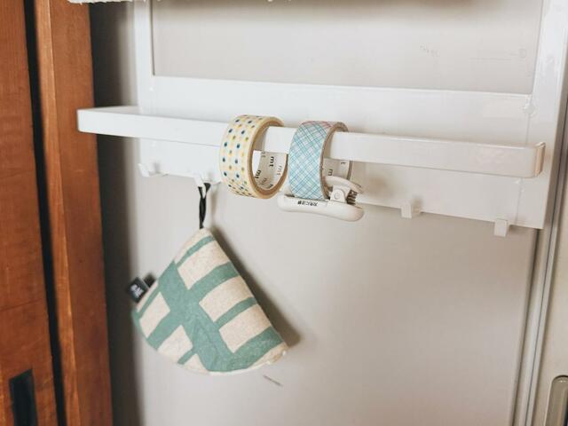 クリップをつけたまま、マスキングテープをフックにかけています。