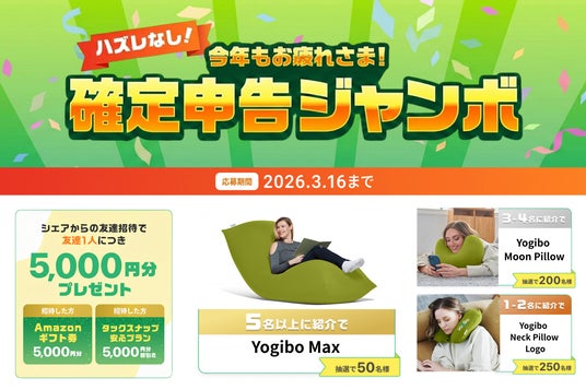 株式会社タックスナップ(代表取締役CEO:田中 雄太、本社:東京都杉並区)は、2026年1月19日(月)より、確定申告アプリ「タックスナップ」にて「確定申告ジャンボ」キャンペーンを実施いたします。