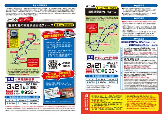 ※「龍馬お龍の霧島浪漫街道コース(約16km)」の会場には、参加者駐車場がありませんのでご了承の上お申し込みください。