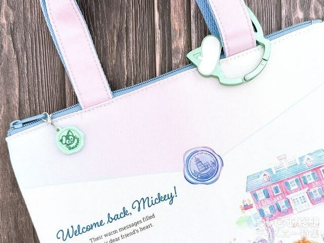 カラビナ付属のシーリングスタンプのチャームは、ファスナートップに。