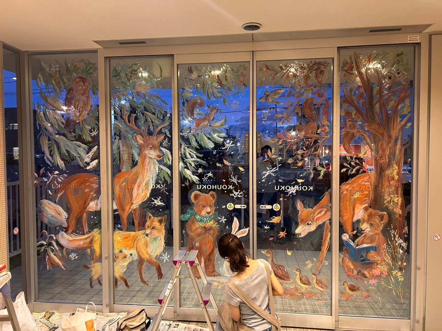 時間によって変わっていく光によって、さまざまな表情をみせるキットパスウィンドウアート。