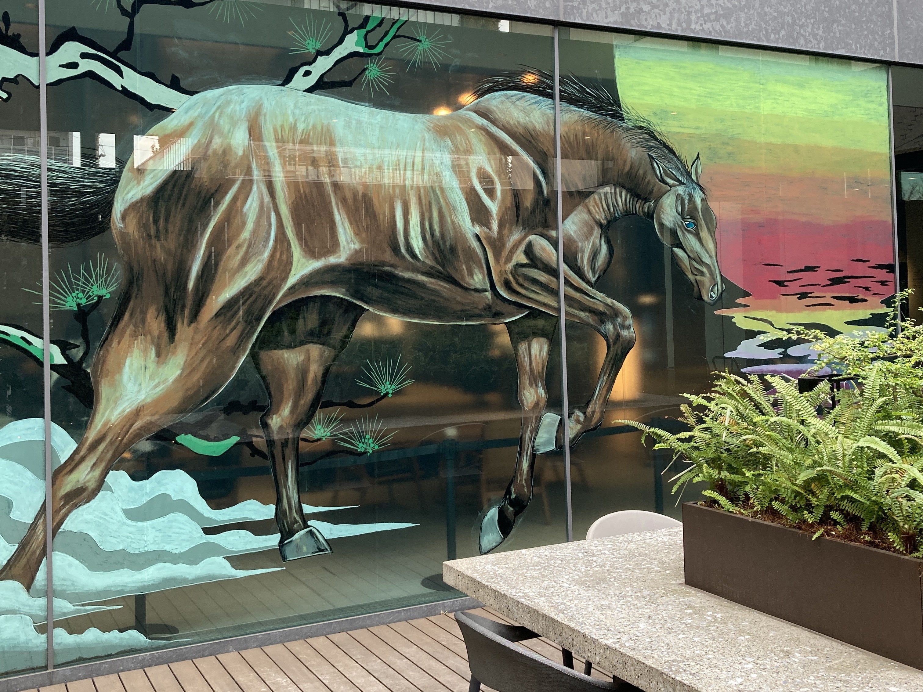 さらに、「制作風景を見ていたご家族から、『子供が刺激を受け、帰宅後に自宅にあるキットパスを使って、窓に馬の絵を描き始めた』という嬉しい報告をSNSを通じて直接いただきました。ライブペインティングを楽しんだご家族がホテル滞在の思い出とともに「体験の持ち帰り」をされた大きな成果につながっています。