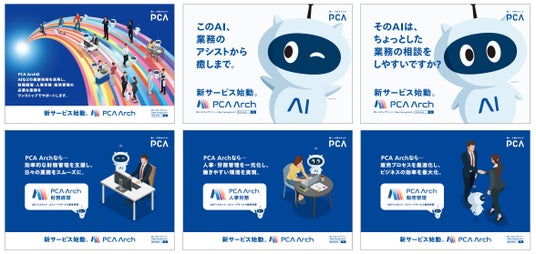 今回の広告では、『PCA Arch』によって、バックオフィス業務に携わる人々が抱えるお悩みを、AIなどを活用して解決のお手伝いができることや、難しいと思われがちなAIは親しみやすいサービスであるということを、イラストによって分かりやすく説明しています。JR東日本首都圏の電車内にデザイン6種が掲出され、可愛いロボットが目を引くポスター広告となっています。首都圏の多くの人が利用するJR東日本への掲出で、さらなる認知拡大を期待しています。