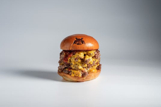 A5ランク神戸牛のサーロインステーキと、神戸牛を贅沢に使用したチーズパティを重ねた、迫力の二層構造バーガー。