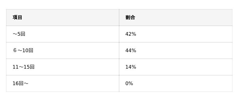 - 施術回数は「6~10回」(44%)が最多で、10回未満が全体の86%