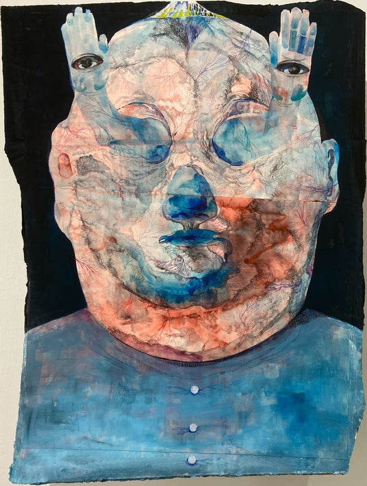 安藤圭汰は九州産業大学芸術学部で洋画を専攻。在学中からさまざまな公募展で入賞を果たし、頭角を現します。2019年にインドネシア・ジョグジャカルタ特別州のアーティスト・イン・レジデンスに参加し、現地の宗教文化体験に強く影響を受け、以後「生と死/循環」をテーマに国内外で作品を発表しています。