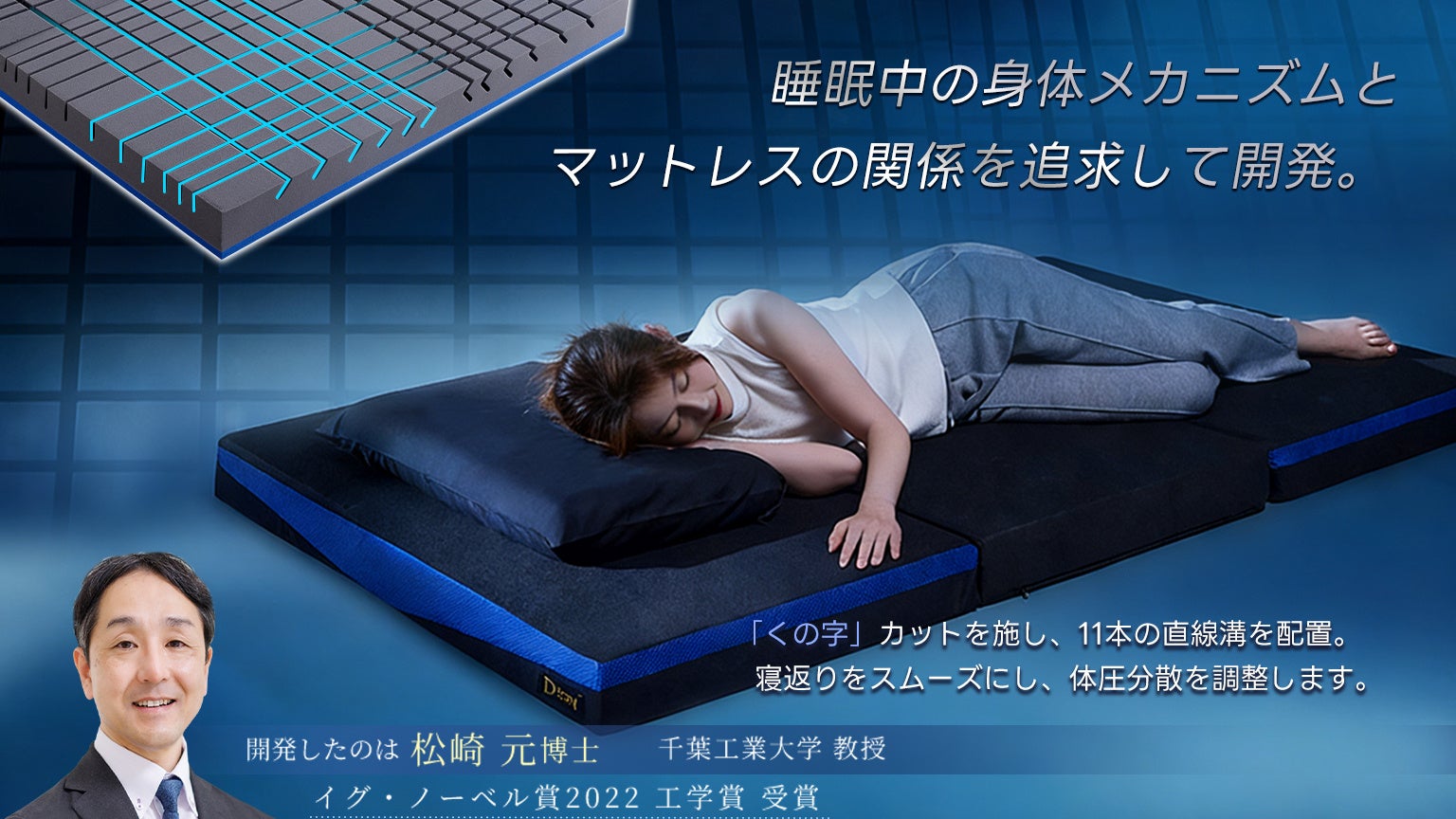この課題に対し、DE・MON(デーモン)は「素材の積み重ね」ではなく「力学的構造」による解決を模索 。千葉工業大学の松崎元教授との共同研究を通じて、睡眠中の身体のメカニズムの知見を取り入れた独自の「くの字カット」構造を開発しました 。身体の動きに合わせて合理的に応答するこの構造は、スムーズな寝返りをサポートし、睡眠を「単なる休息」から「魂と身体の再生時間」へと進化させます 。