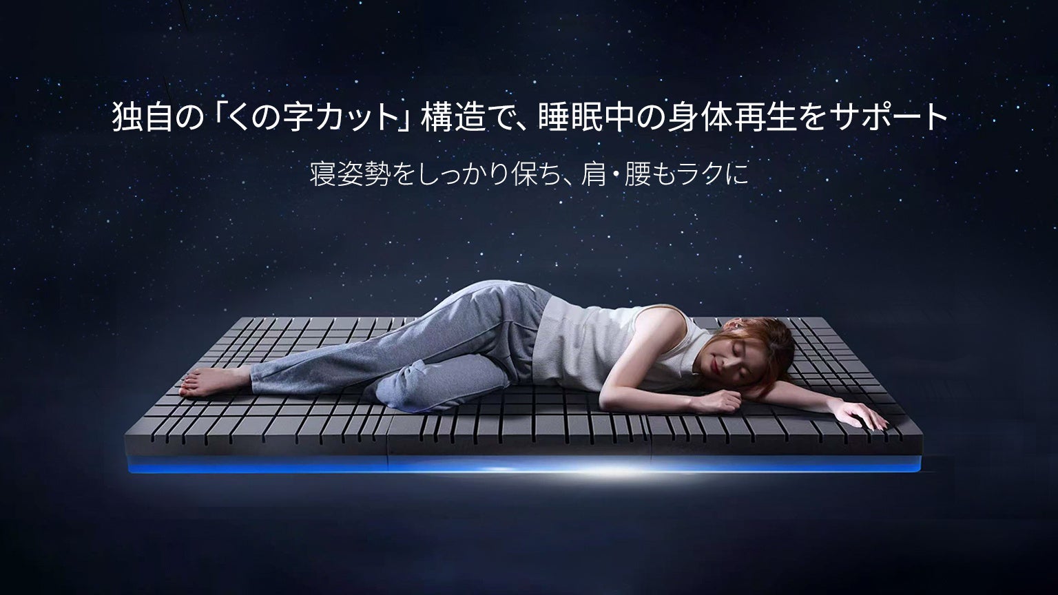 高密度ウレタンに「くの字カット」を施し、部位ごとに差異化したサポートを提供。「腰の浮き」や「寝返りのしにくさ」といった基本課題を解消する、ブランドの中核モデルです 。