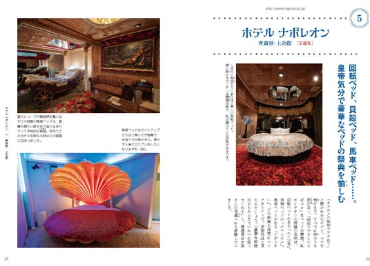 「お姉さん、自殺じゃないですよね?」と声をかけられた衝撃の入室エピソードから、夜行バスを利用して11時間の交通費を節約する取材の裏側まで。本書では、フロント側から見たエアシューターの圧巻の光景や、「回転ベッド」考案者のレジェンドが語る秘話、昭和の職人魂が込められたネオン管について紹介しています。 さらには、2階にある透明なバスタブや1階から見上げるスペースシャトル型のベッドといった驚愕の設備に加え、昭和ラブホの名脇役である「ホテル名入りマッチ」や、20分200円で使える超レトロな電マも登場。
