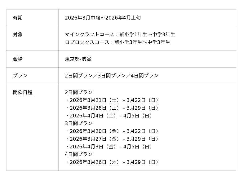 ■「Tech Kids CAMP Spring 2026」開催概要