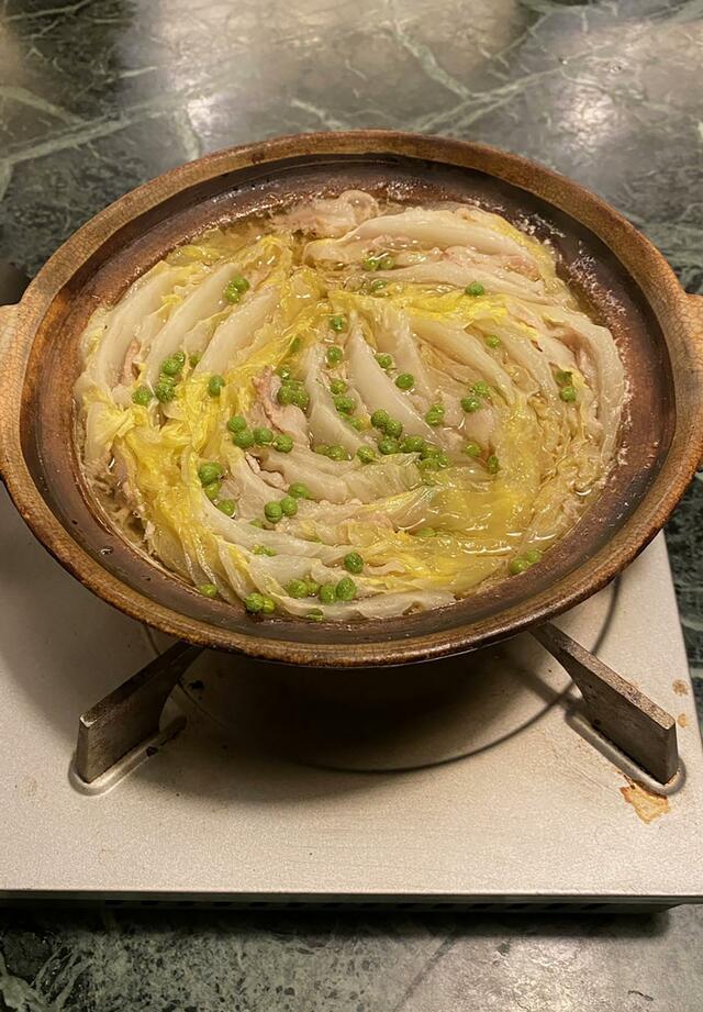 またもや食卓に登場します「白菜と豚バラ肉のミルフイユ鍋」。今夜は山椒の実をばら撒いてみました。おいしさアップしました。