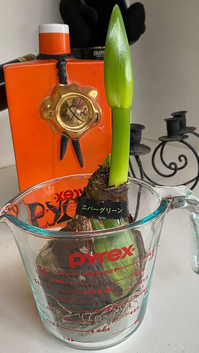ONちゃんからいただいた「マジックアマリリス」の芽が急にグンと伸びました。この子にはお水が不要。いただいてから1ヶ月近く経つけれど、水無しでこんなに育っている。これならMagicだと胸を張れる。開花する日が待ち遠しい。