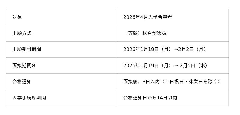 新たな出願方法「【専願】総合型選抜」の出願受付を開始