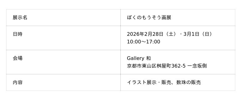 2026年2月28日(土)・3月1日(日)の2日間、京都・東山のGallery 和にて、