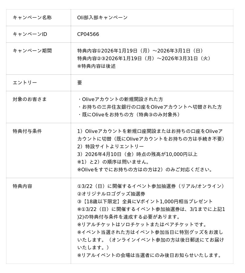 https://www.smbc.co.jp/kojin/olive/special/campaign/student_olibu/?aff=CP04698_o_snsOTH_CT52264_img&utm_source=sns&utm_medium=OTH&utm_campaign=CP04698_o_snsOTH_CT52264_img■コラボキャンペーン概要