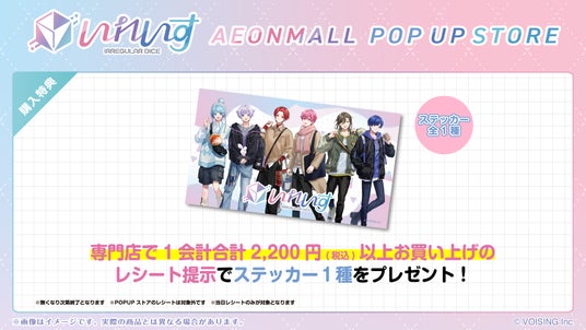 加えて、各イオンモール内の専門店にて税込2,200円以上お買い上げいただいた方を対象に、お買い物キャンペーンも展開いたします。条件を満たした方には、今回のコラボ限定デザインとなるオリジナルステッカー(集合ビジュアル1種)をプレゼント。日常のお買い物の中で、さりげなく“推し活”を楽しめる施策となっております。