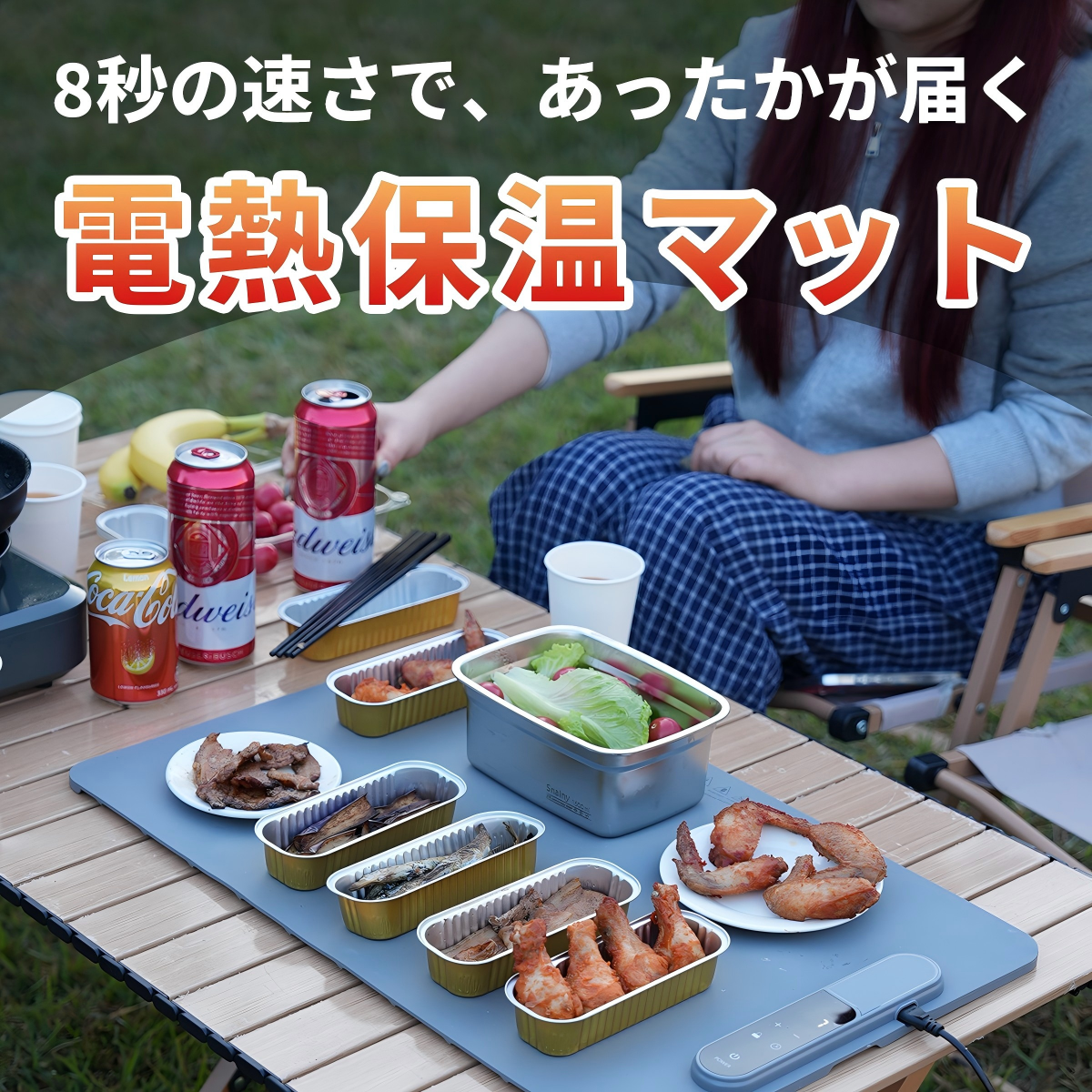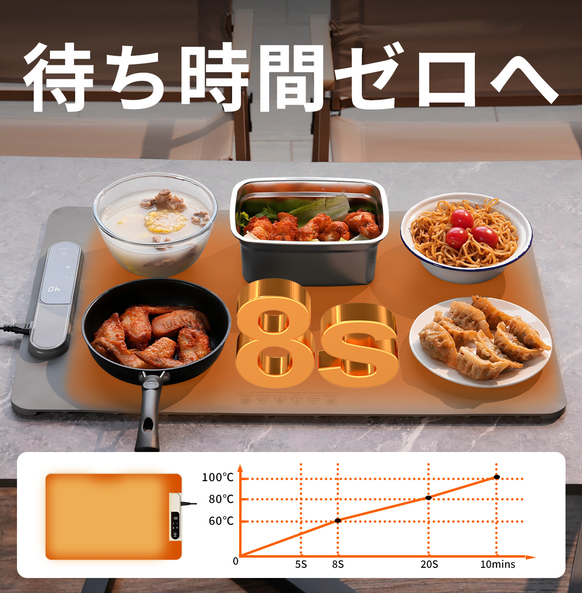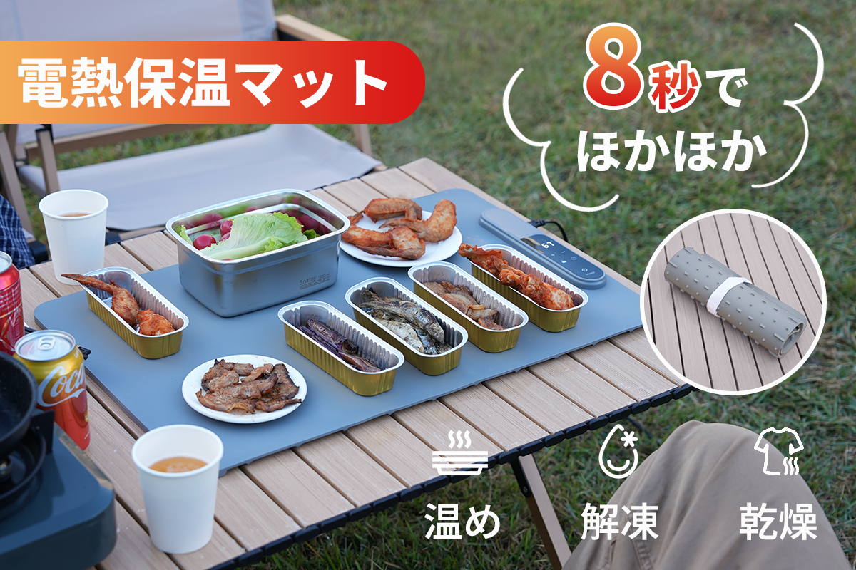 電源を入れてから、実用的な保温温度(約60℃)に到達するまで、わずか約8秒。キャンプで料理が冷めてしまった時、家庭で急いで朝食を温めたい時でも、「温まるのを待つ」というストレスから解放されます。
