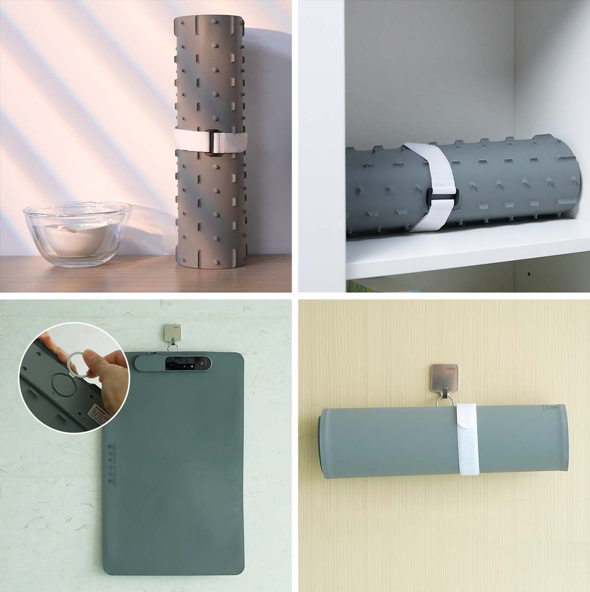 柔軟なシリコン製の本体は、使用後はくるりと丸めるだけで完了。収納時の直径を驚くほどコンパクトにできます。キャンプギアボックスやキッチンの引き出しの隙間にもすっきり収まります。