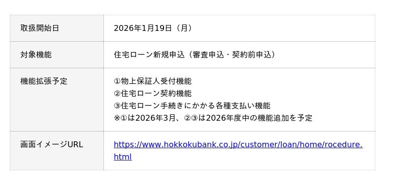 株式会社北國銀行(代表取締役社長:米谷 治彦)は、2026年1月19日(月)より、個人向けポータルサイト「北國まるごと窓口ナビ」において、住宅ローン新規申込のオンライン受付を開始いたします。