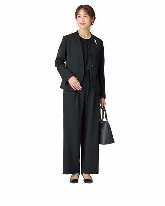 カラー:〈カットジョーゼット ジャケット/ジレ・パンツ(テーパード・セミワイド)・ブラウス〉コイアオ・クロ