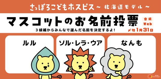 NPO法人ソルウェイズが取り組む「さっぽろこどもホスピス ~北海道モデル~」では、イメージマスコットが決まりました。そのお名前を決定するため、一般投票を開始します。投票期間は、2026年1月25日から1月31日までです。