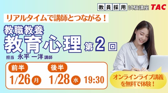 「教育心理」始まりました!TACのオンラインライブ教職教養講義!