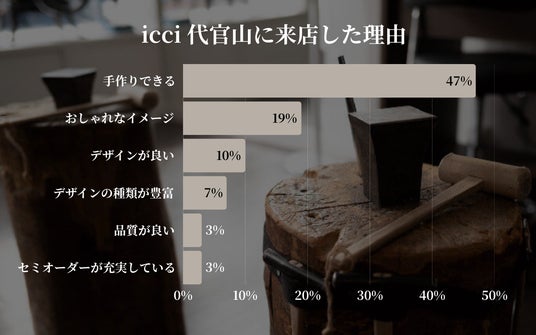 「手作りできる(47%)」が半数近くを占め、依然として「指輪を作る体験」が最大の来店動機となっています。